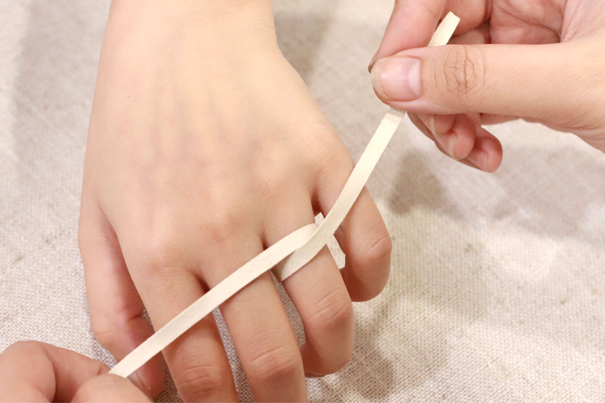 - Take a piece of string, paper, or ribbon. Wrap it gently around the finger where you intend to wear the ring.