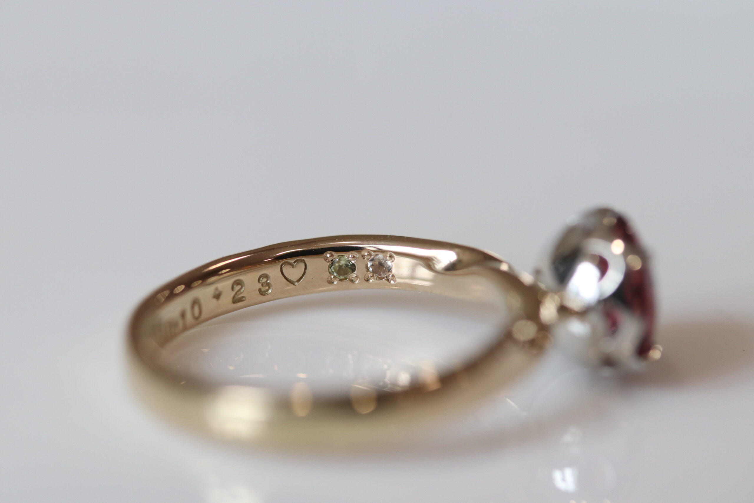 The surprise was first carried out with the ready-made 18K Champagne Gold ring base, and the family of three sat down to choose from a small selection of Tourmalines. With the help of their adorable daughter, they were drawn to the Pink Tourmaline, which is reminiscent of the shades of a blooming rose.